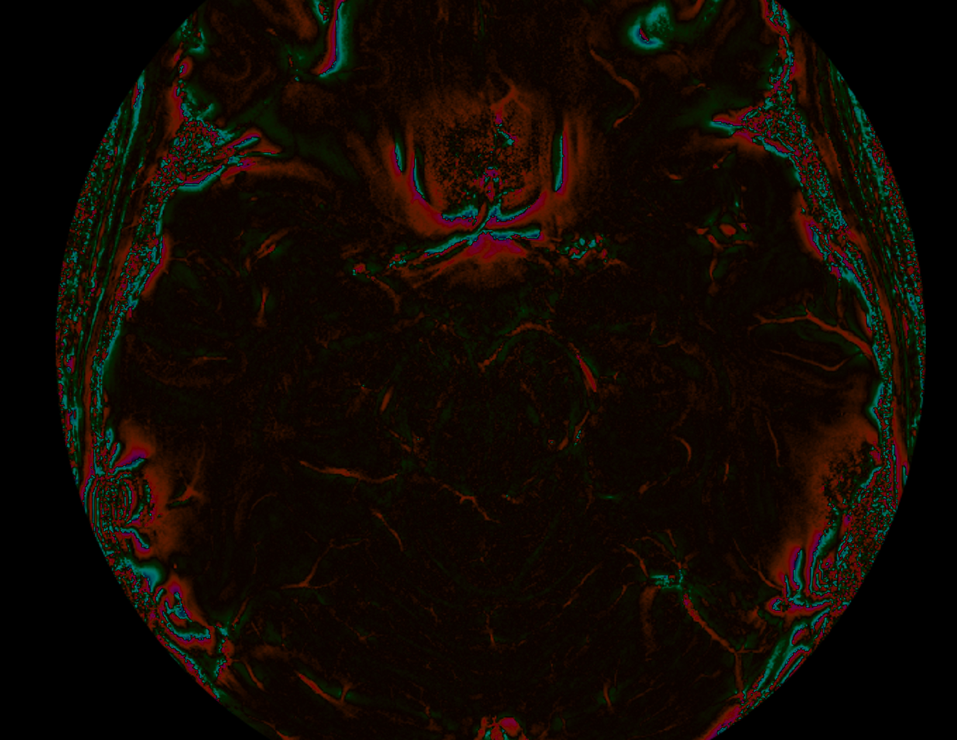 Suceptablity differences between tissues can and phase changes to the images we acquire. Here the sinus cause a beautiful rose-shaped pattern